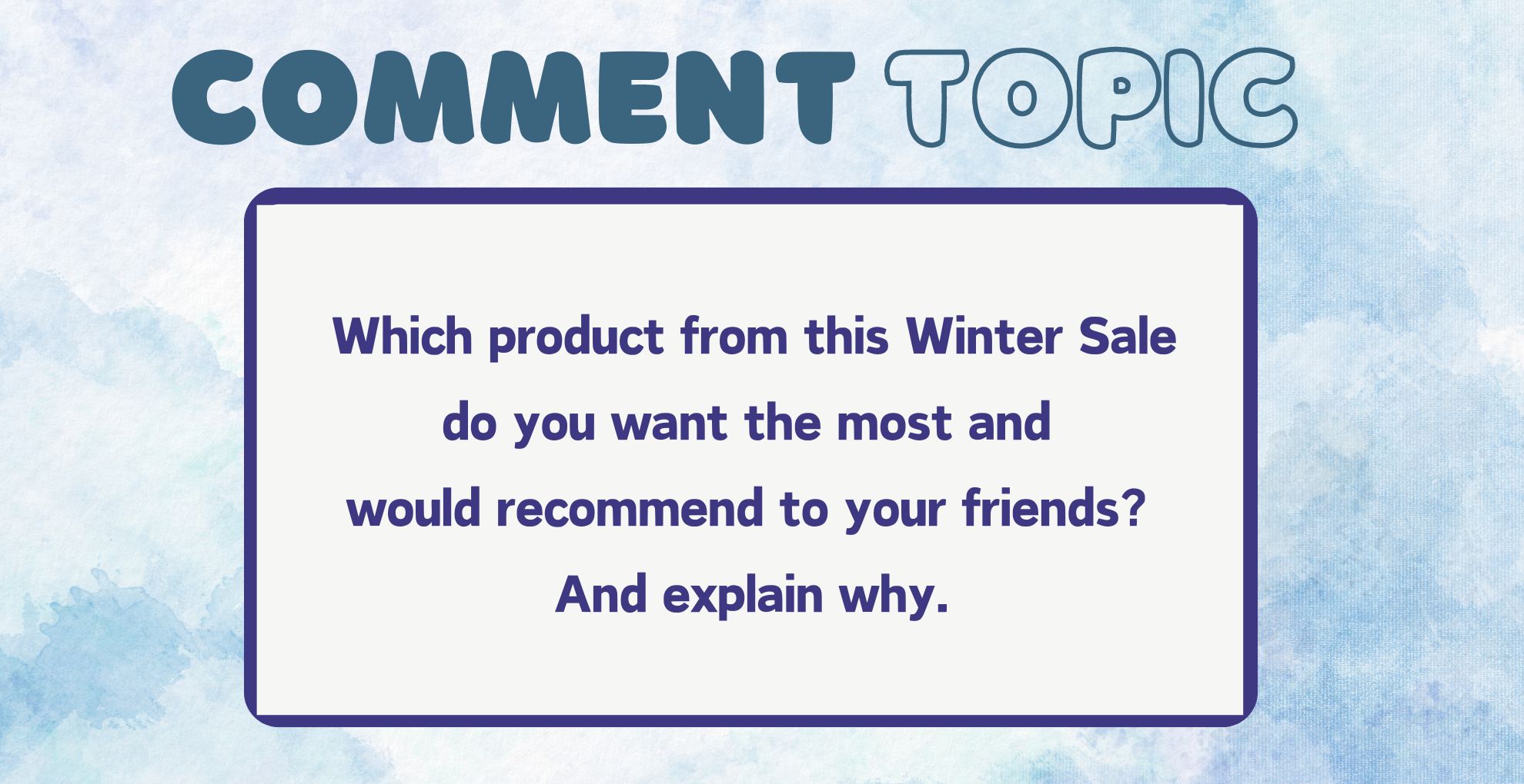 We're excited to engage with our community through our Blog Giveaway! To enter, simply leave a comment on our blog telling us which product from the Winter Sale you most desire and would recommend to your friends, along with an explanation of why you've chosen this product.