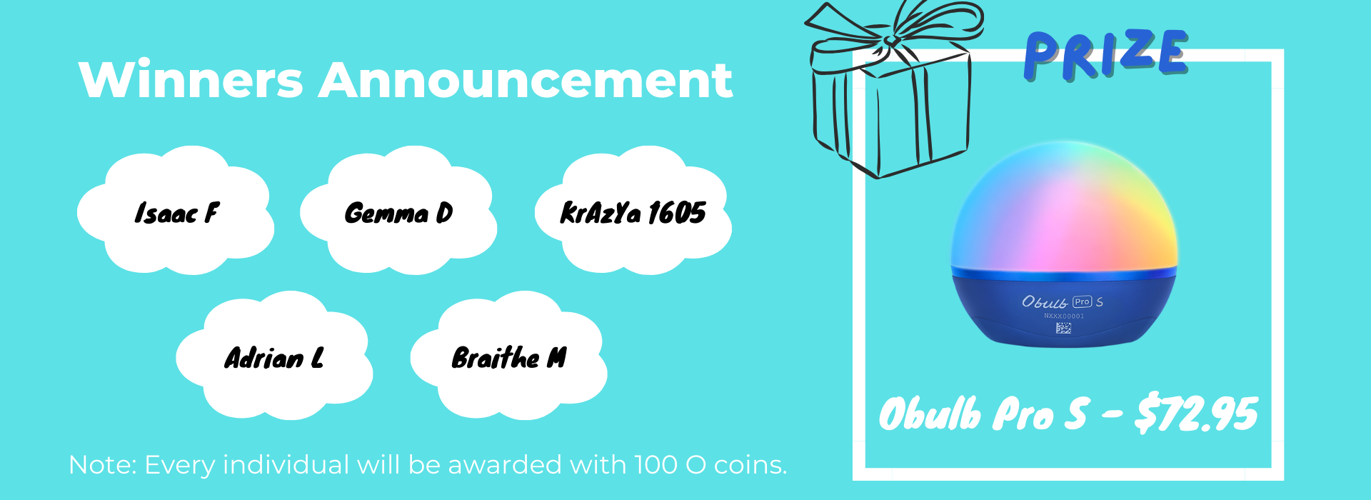 🎁Here's what's on offer: each participant who shares their experience with us will receive 100 O coins, and 5 randomly chosen winners will get their hands on 5 Obulb Pro S.