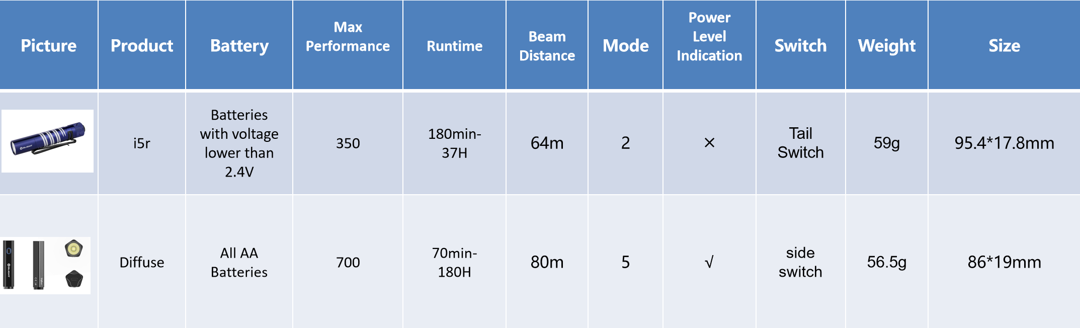 The Comparison of i5R Pocket Torches