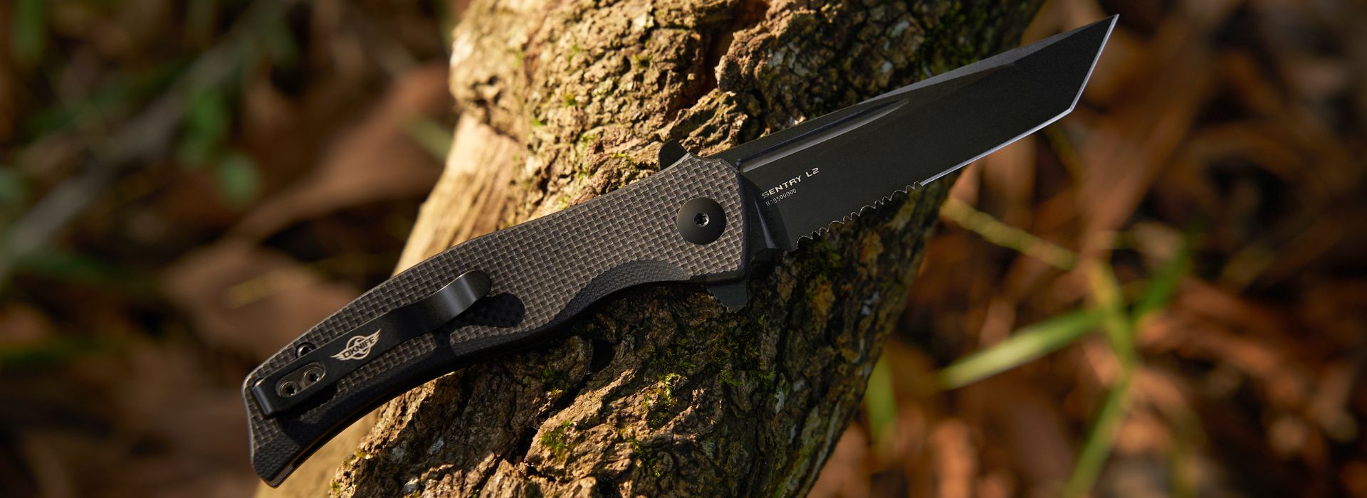 The Sentry L2 Tactical Folding Knife is a rugged and tactically superior tool designed to meet demanding situations. It features a partially serrated D2 tanto blade for piercing, push cutting, and rigorous cutting, along with an effective finger guard, textured G10 handle for a secure grip, and fullers for tactical style.
