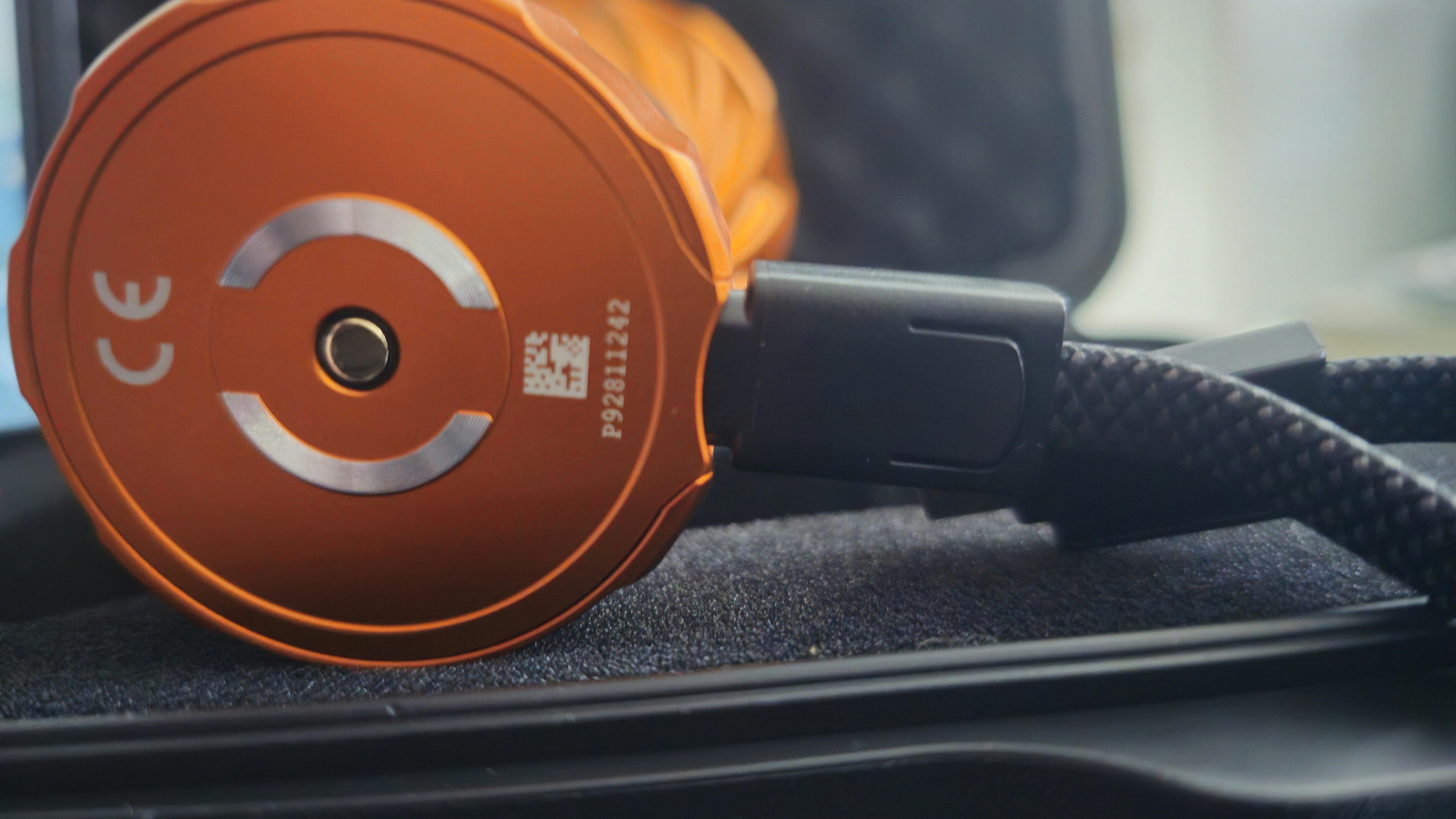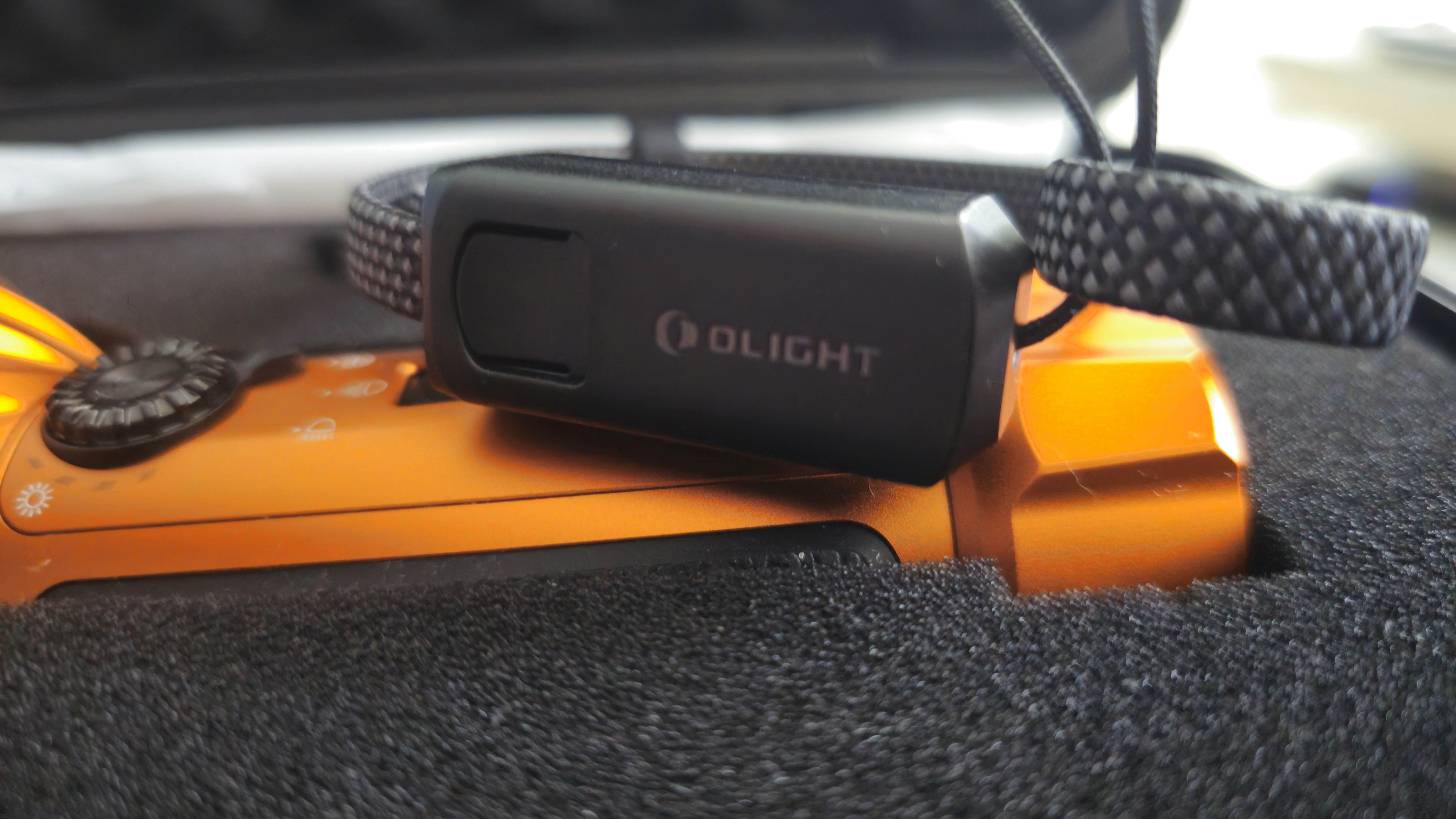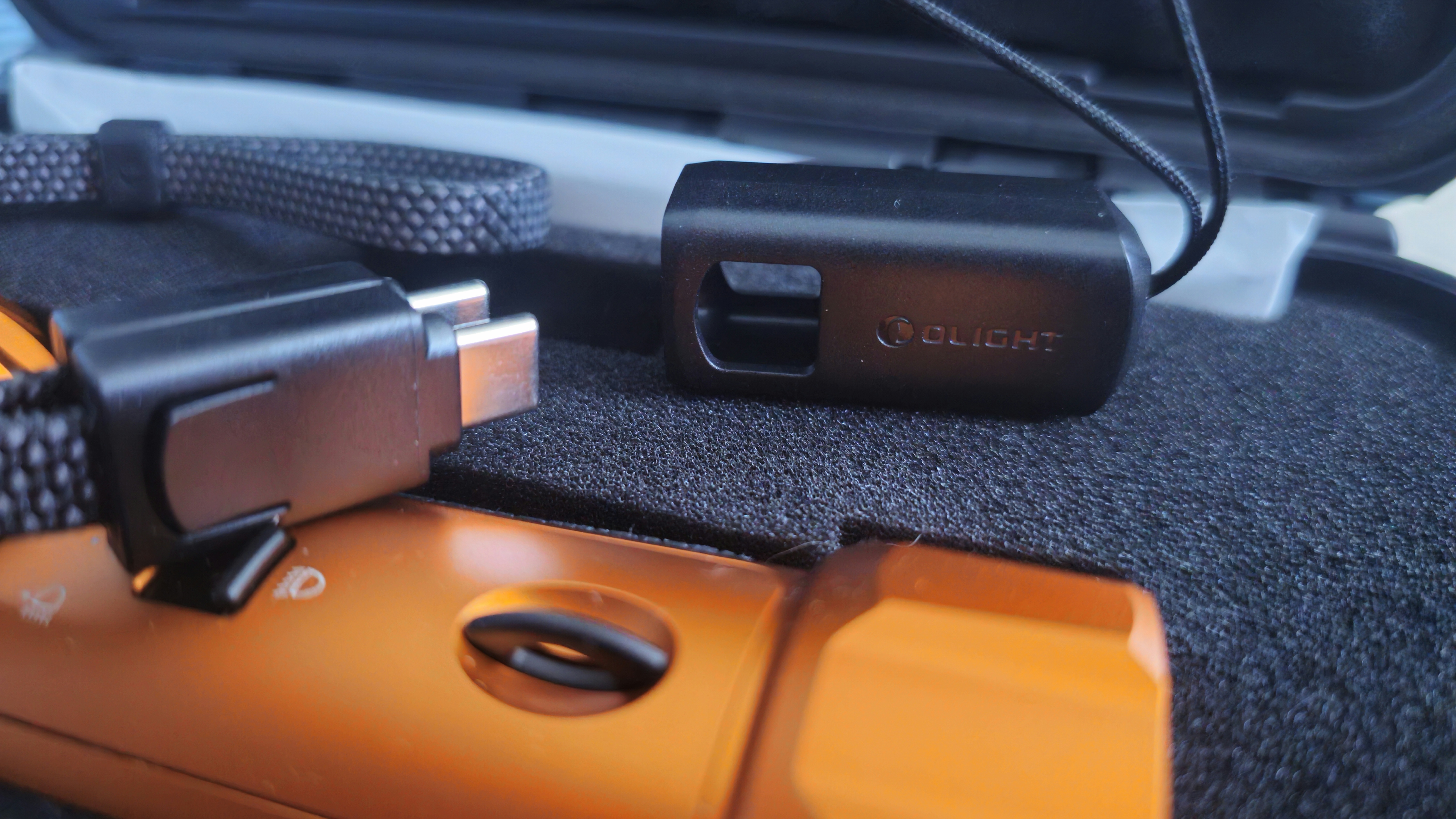 Its body material is the standard Olight A6061- T6 Aluminum Alloy which feels very smooth and velvety in the hand thanks to the beautiful smooth anodized finish. But I can’t help but wonder why Olight didn’t use their new super OAL for this torch? It’s definitely an item that would benefit from that more rugged, scratch resistant material as this is an item that will inevitably get dropped or kicked or knocked about while frantically searching for something in a dark forest. However, to their credit, Olight has included a very premium feeling pelican style case complete with a customer foam cutout for torch AND the wrist strap. Speaking of which, the wrist strap is yet another example of why Olight is the industry leader in technology innovation and engineering. Why? Because this wrist strap is actually a secret USB - C charging cable! I honestly could not believe it when I figured that out. It feels like a nice, sturdy but gentle on the skin wrist strap, but the quick release mechanism hides the charging cable ends! To me, this is absolutely brilliant and shows how much effort Olight really does put into refining their designs.