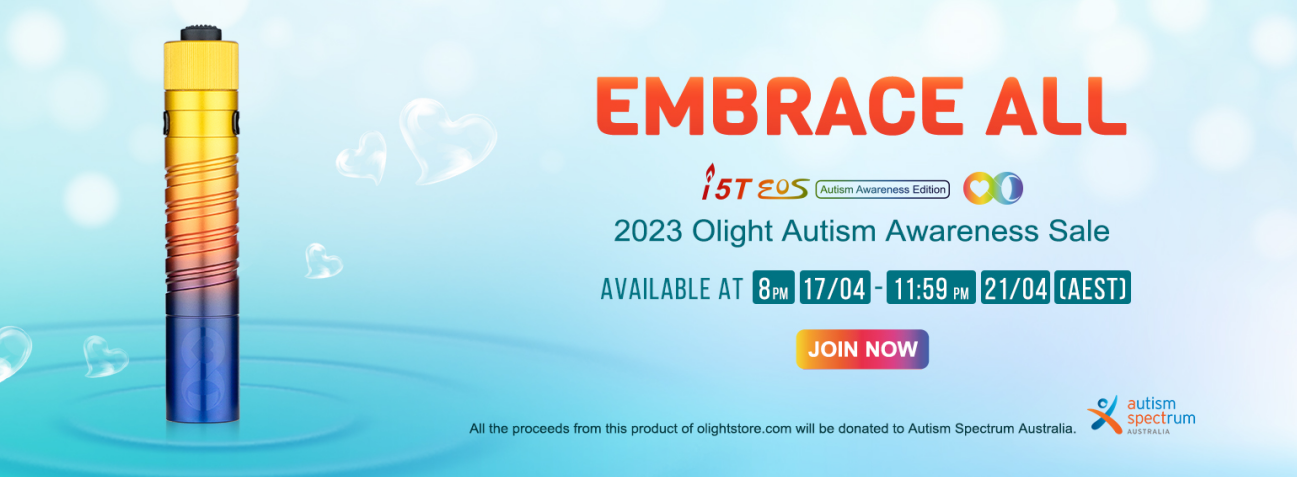 The April anniversary event aligns with World Autism Month, and during this time, Olight is committed to promoting equality for all. We aim to contribute to Autism awareness initiatives and offer support in any way possible. Additionally, you can make a difference by purchasing the Autism Awareness Edition light, as all the profits will be donated to the Organization for Autism Spectrum Australia.
