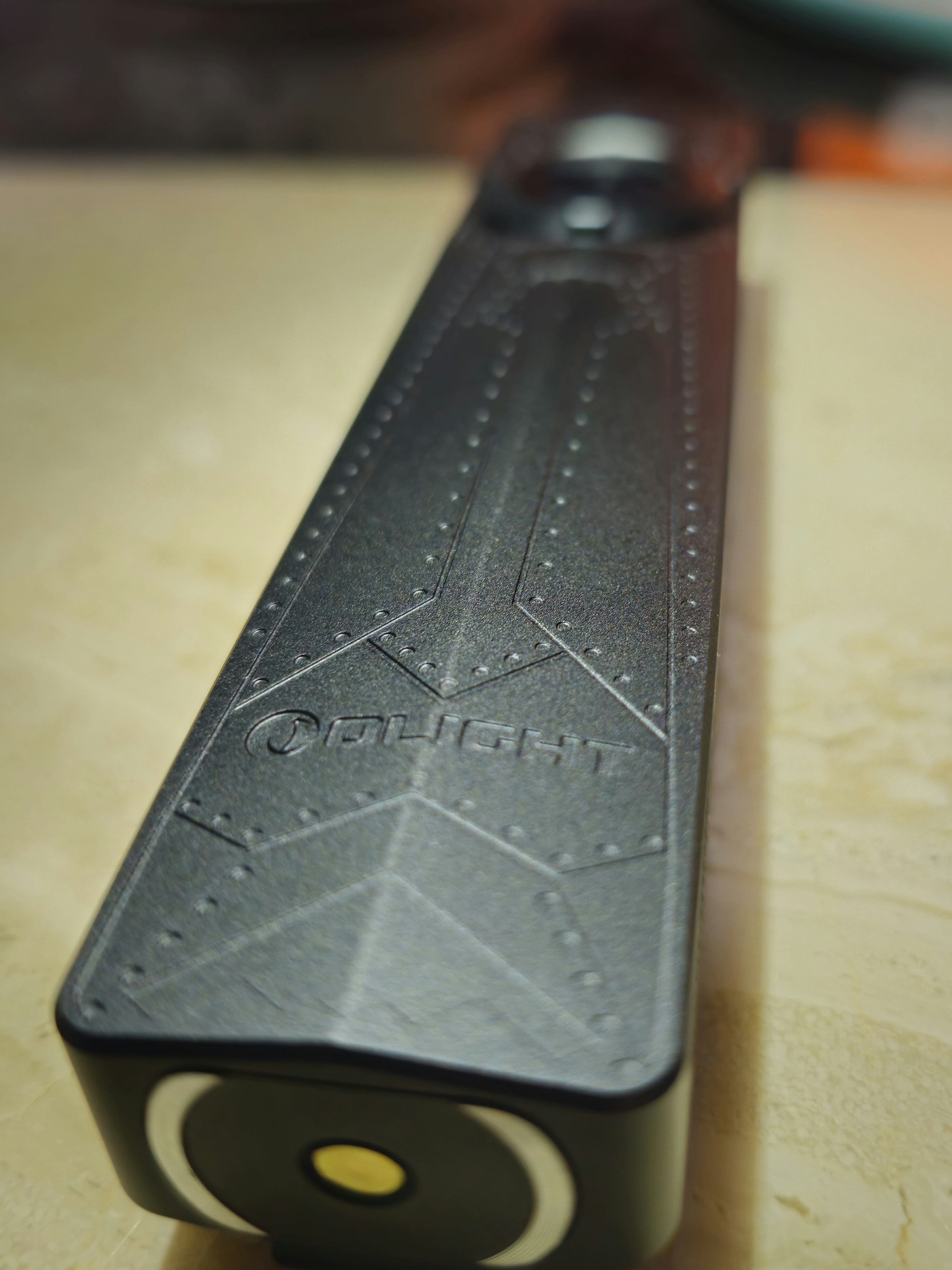 The overall design aesthetic of the Arkpro has been revamped and the first thing I noticed about the ArkPro itself was the new raised central ridge that runs down the centre of the body, which Olight says “adds structure and a sense of depth.” I received the Phantom Squadron Edition so this new centre line really fits in nicely with its stealth bomber theme. The Arkpro is available in a variety of different colours including an industry first, two-tone variant which will be really well accentuated by this new ridge.