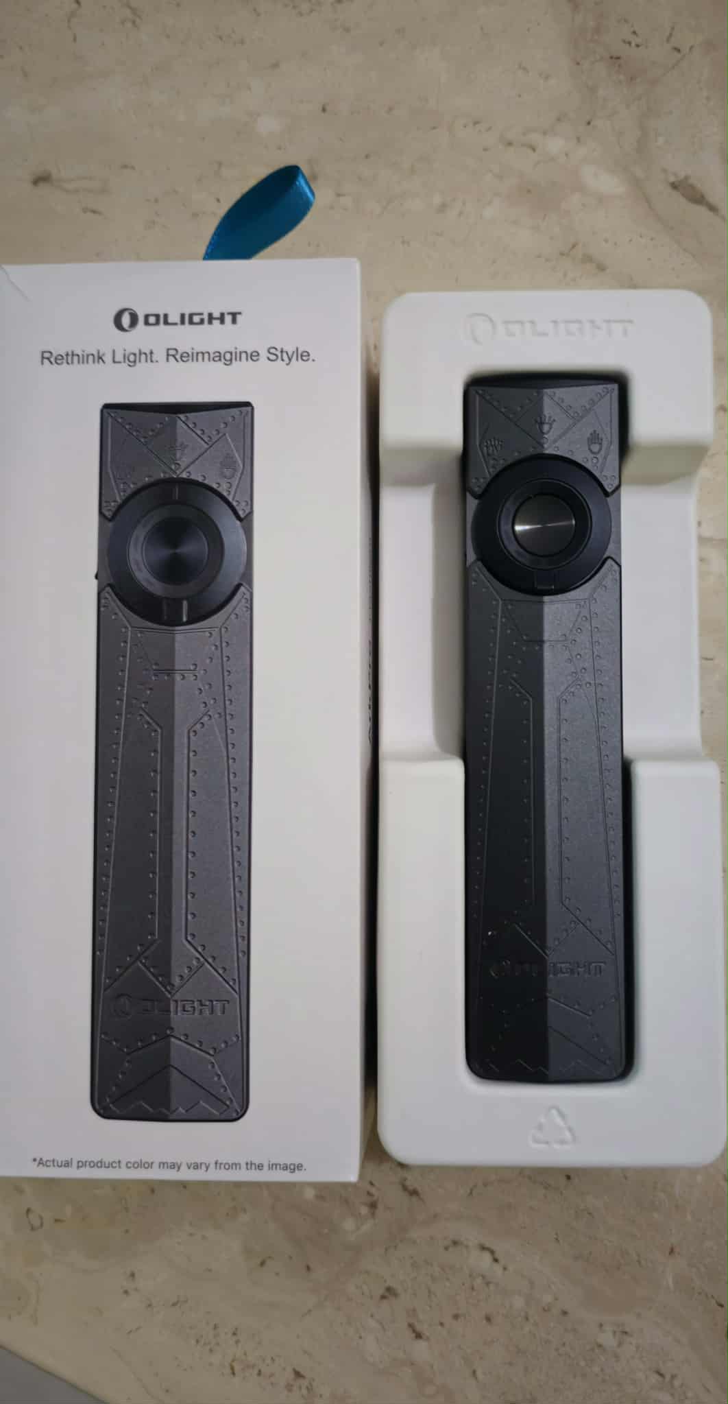 As usual, shipping was very fast but there was no padding in the box it was shipped in so the pristine white box of the Arkpro was a bit banged up unfortunately but it’s not a big deal. Olight seems to have done away with their previous magnetic closure boxes, but the box is still nice and premium feeling.