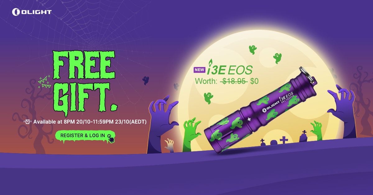 Simply log in during the Halloween Sale to claim your i3E EOS “Halloween Ghost—a compact keychain light with a ghostly glow that’s perfect for this spooky season. Whether it’s lighting up your candy hunt or adding some Halloween flair to your EDC, this little ghost is your loyal companion in the dark.