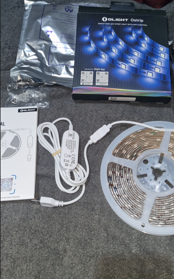 What you get in the box is the Ostrip itself, which comes on the white plastic roller you can see in the image above. A small plastic bag with clips and screws for securing it to your wall, and an instruction booklet on how to use the Ostrip are also in the bag. There are 8 screws and 8 clamps, but the Ostrip itself also comes with 3M tape all along its length, so the clips only really act as extra support, because that tape is high quality stuff. As you can see, I had no problem attaching the Olight to my roof in my living room: