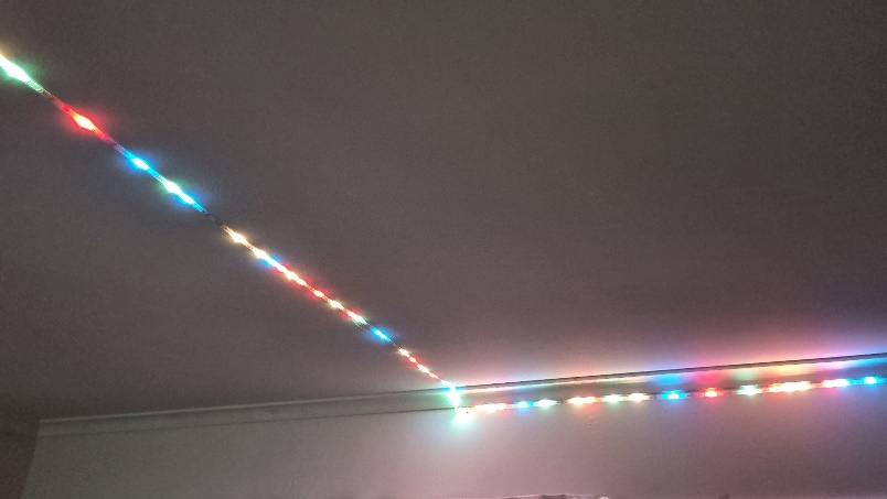 You can clearly see that the Olight is attached to my wall and roof really well in this image, but my camera does not do the Ostrip lighting justice. This light is incredibly vibrant and lights up the room really well. It adds a colourful glow to the whole room which gives it a nice atmosphere, of your choosing, as there are heaps of settings with this light.