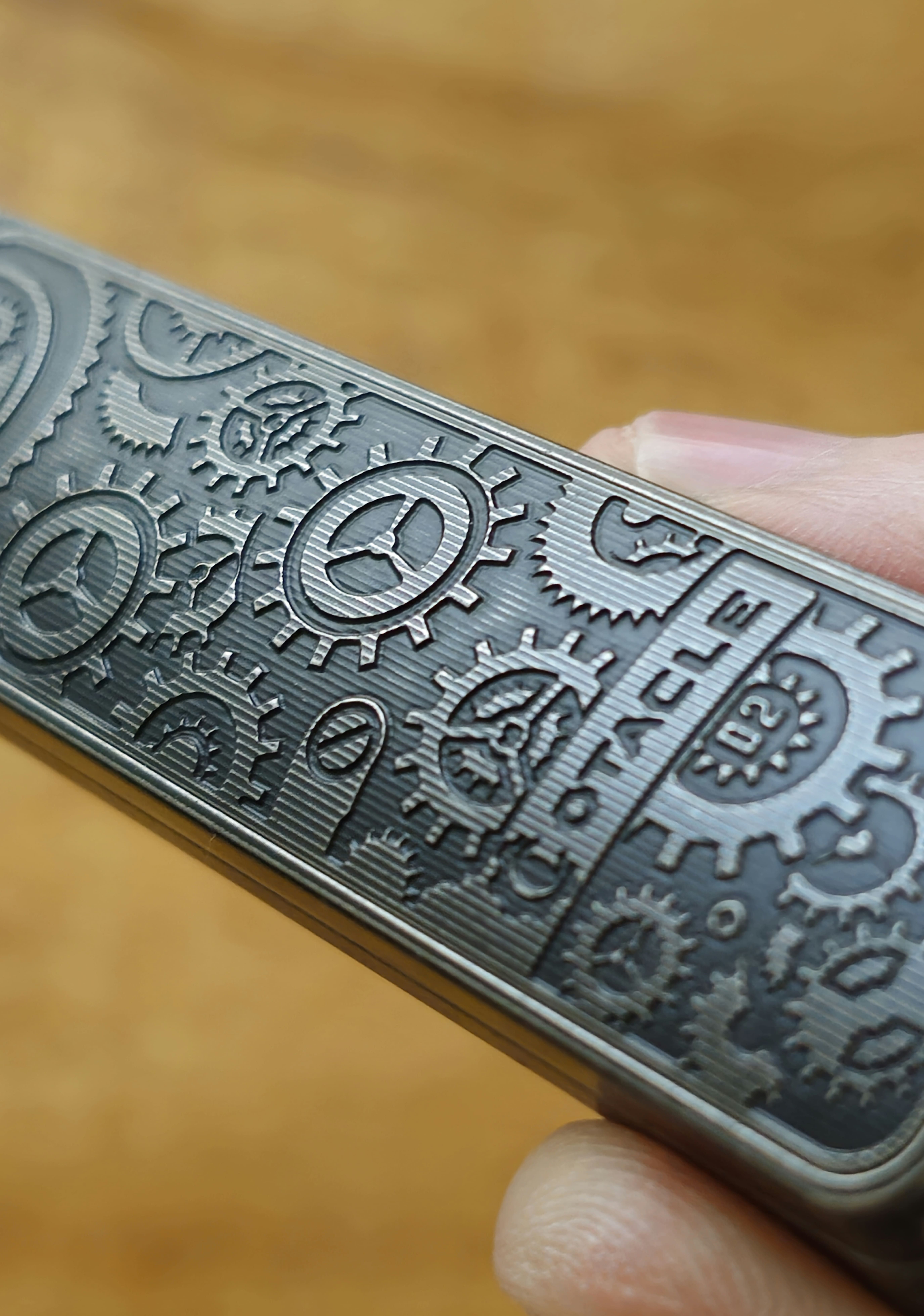 On the website it looked like a very intricate and interesting design that would require extreme precision to execute well; which Olight executed perfectly. The stunning design of the gears has been milled flawlessly, and on the underside of the device you can find some more impressive micro milled texturing that is so fine it actually feels almost smooth! Along with “Otacle D2 Ti Gears” and the serial number - which I think has been laser engraved.