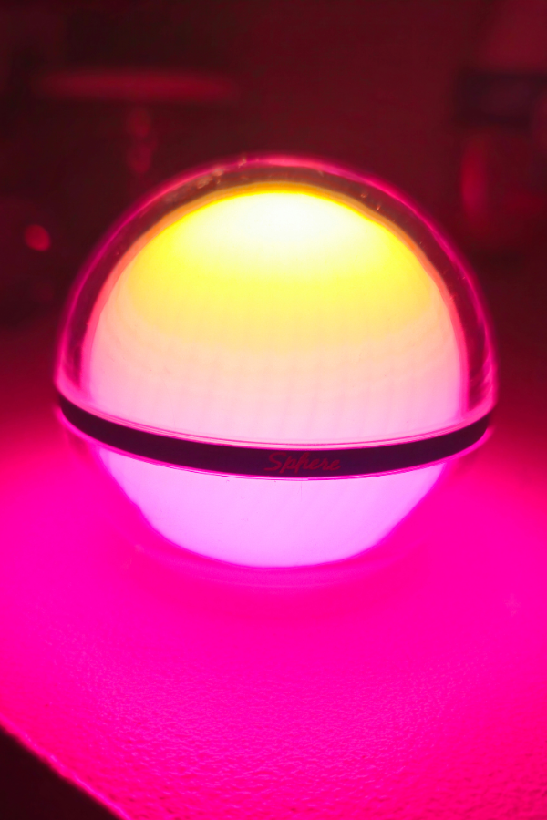 So how does this cool futuristic light orb work? Well it has 7 available modes to choose from simply by pressing the Sphere down and activating the bottom switch. This will take you through the basic white and red mode functions along with a color mode or two. If you press and hold the unit while it is on you can use the stepless dimming function which is great for lowering the brightness at bedtime.