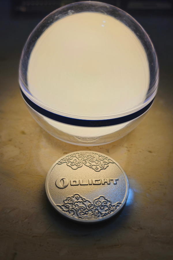 Picking up the Sphere for initial inspection, I was quite taken back by how beautiful it is. The crystal clear transparent shell shines so vibrantly down to the trademark Olight blue coloured decorative ring that circumnavigates the center of the Sphere like an exquisite sapphire belt. The shell continues down to the very bottom of the Sphere - probably covering about 95 percent of it - then terminates at the pristine white base.