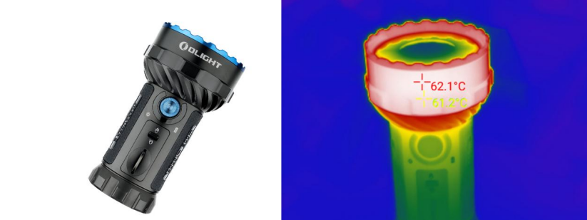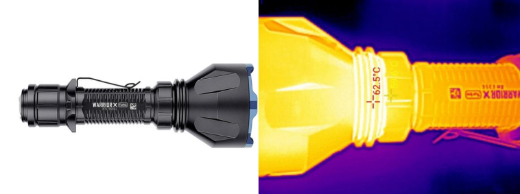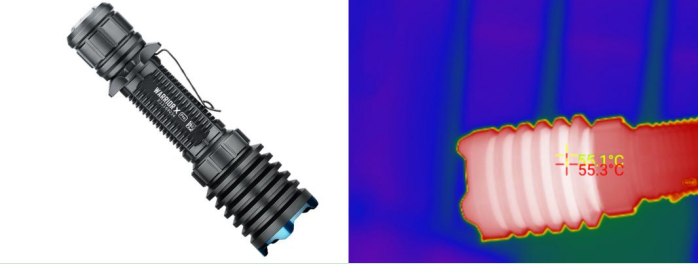 The temperature of most Olight tactical flashlights is limited to 55°C. That is, when the temperature reaches 55 degrees Celsius, the brightness of the flashlight will immediately decrease. For example, Javelot Pro, Warrior X Pro, lighting for 10 minutes, turbo mode. Marauder 2, lights up for 3 minutes in turbo mode.