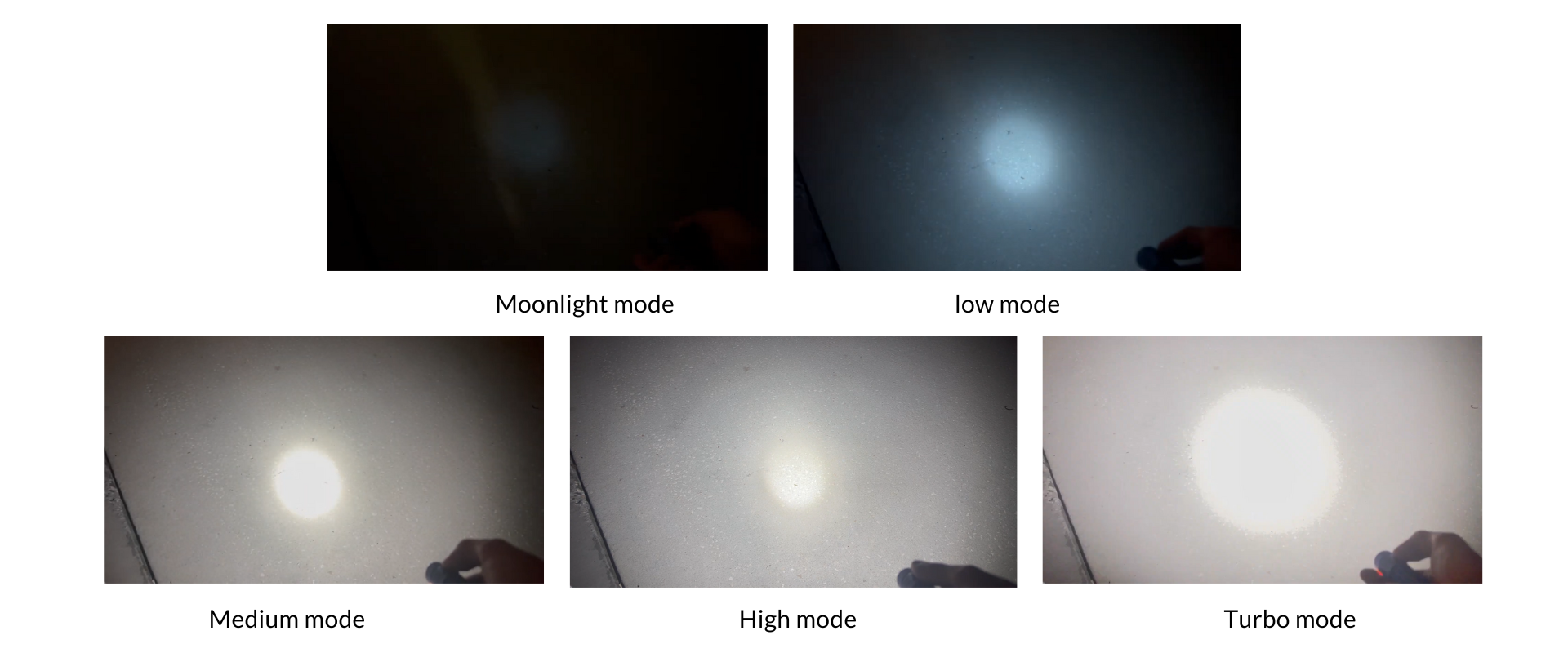 Moonlight mode: 0.5 lumens, preserves night vision, runtime of approximately 100 days.