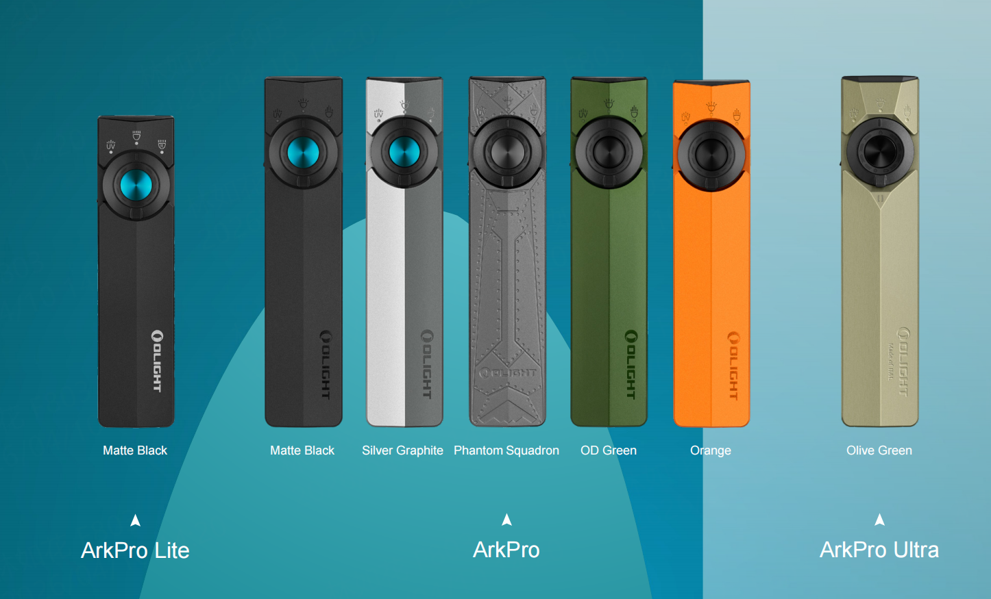 Whether you choose the full-featured ArkPro / ArkPro Ultra (with white light, UV, spotlight, flood, and green laser) or the more compact ArkPro Lite, every model shares the same iconic flat profile and refined details.