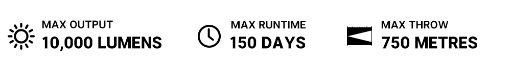 - Uncompromising Performance: A monster 10,000 lumens floodlight and a 750-meter spotlight.